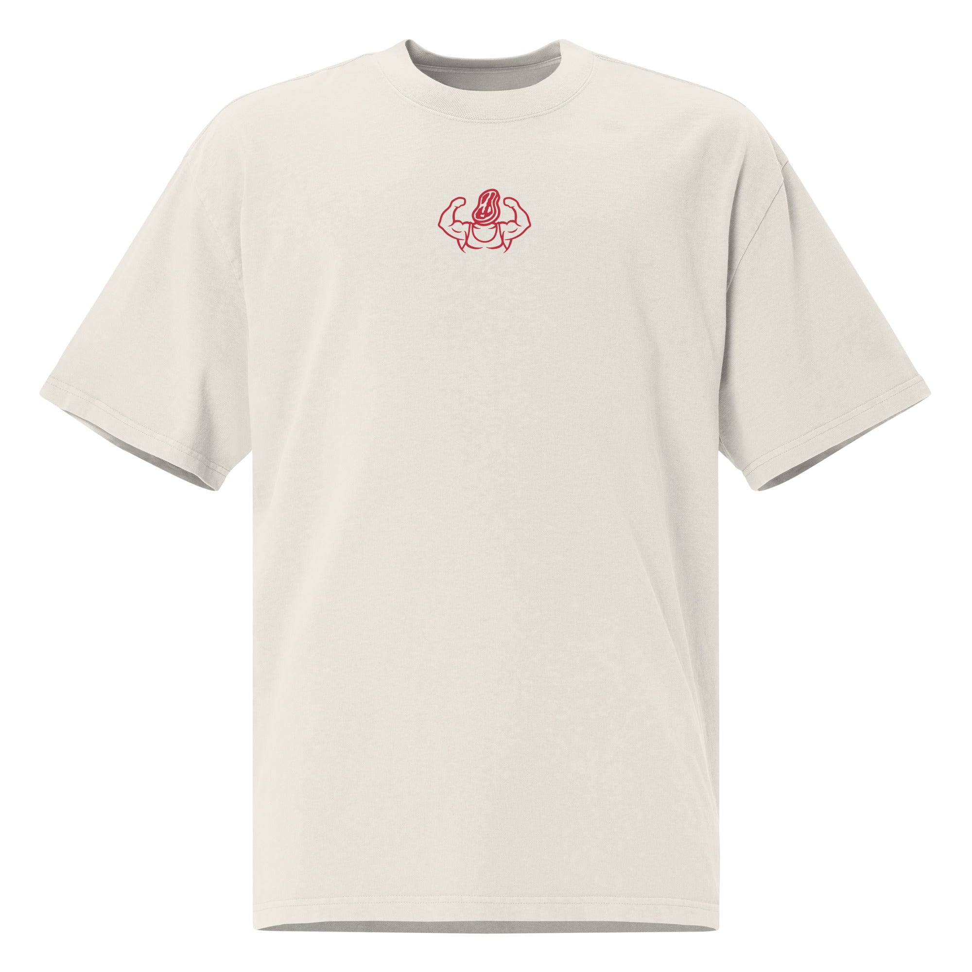 This heavyweight oversized pump cover is the gym uniform for certified meatheads. Featuring our jacked ribeye logo across the back, it’s loud, bold, and dumb in all the right ways. Made with thick, garment-dyed cotton, it’s got that vintage-washed feel that screams “I benched 315 and still can’t spell ‘creatine.’”